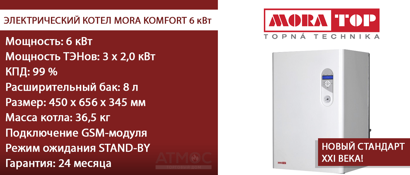 Технические характеристики электрокотла MORA-TOP ELECTRA Komfort 6 кВт для отопления частного дома